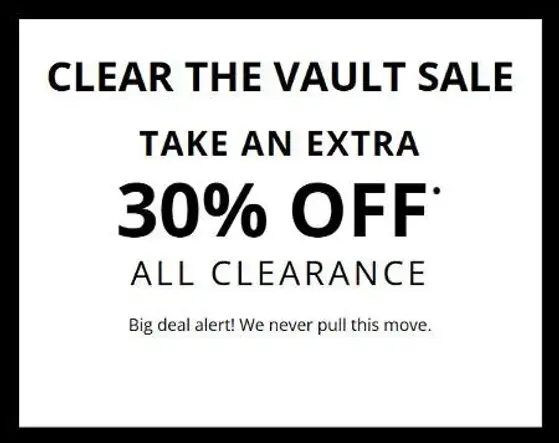 Clear the Vault Sale is here! Shop in store and take an extra 30% off all clearance.